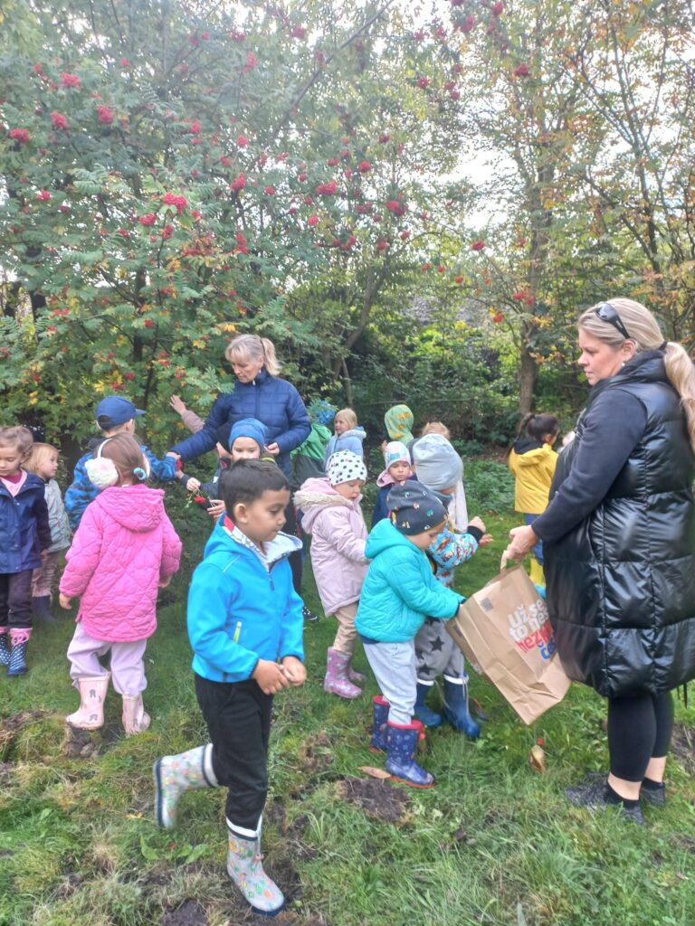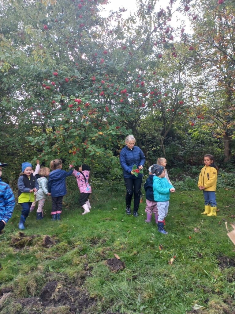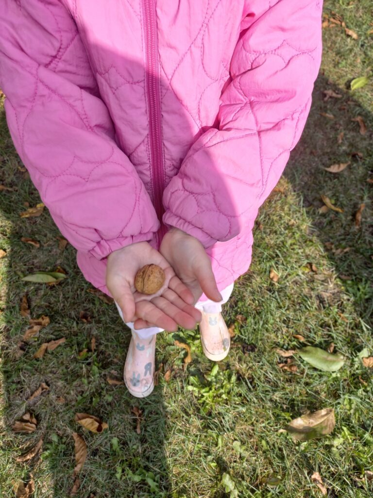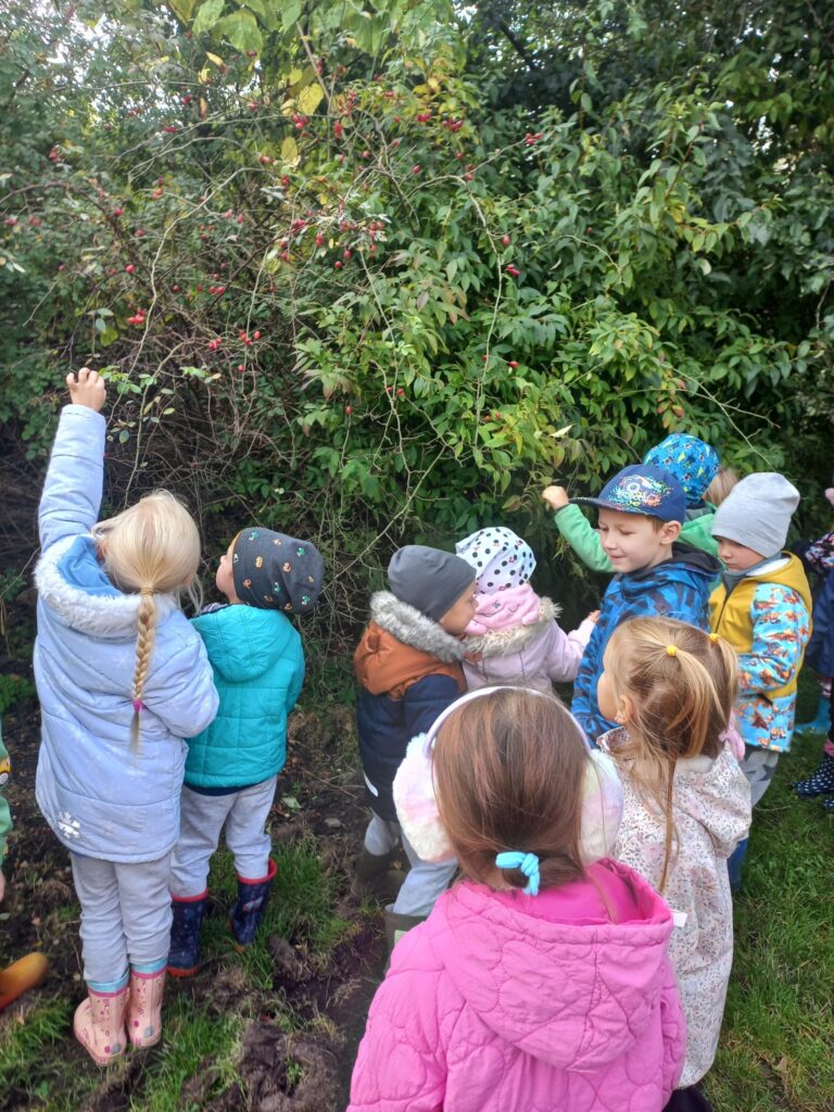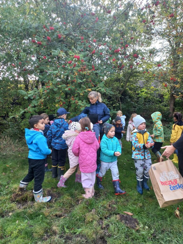 Dnešní procházku za plody podzimu si Berušky i Motýlci užili. Společně jsme pozorovali změny v přírodě a vyhledávali plody podzimu. Sbírali jsme šišky, šípky, jeřabiny, oříšky, barevné listí a dokonce i houby.