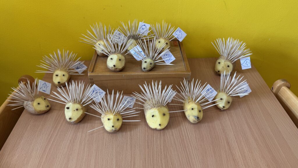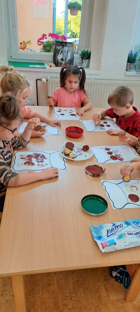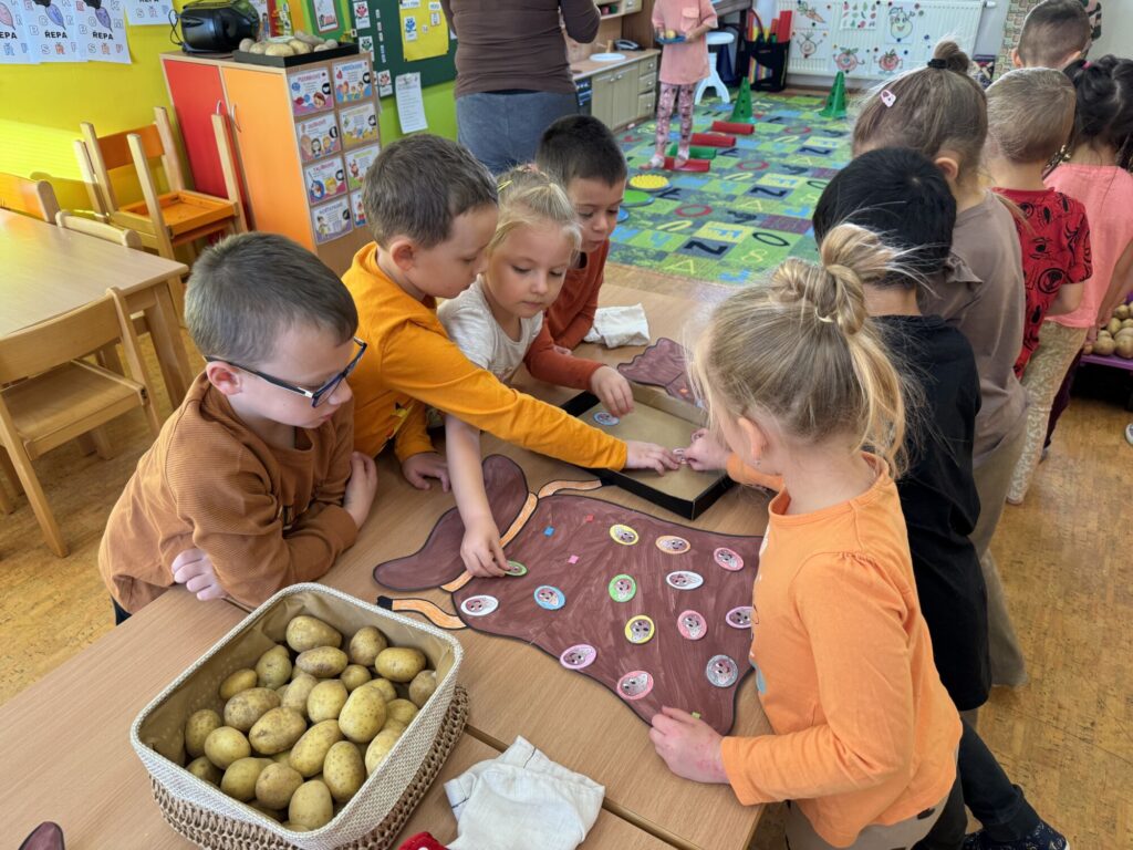 14. října jsme si ve školce užili dopoledne ve znamení brambor. Děti soutěžily v házení brambor, přenášely je přes překážkovou dráhu, tiskaly, ochutnávaly a tvořily z nich veselé postavičky, prasátka i ježky. Čekala na všechny odměna v podobě medaile a sladkosti. Všichni jsme se den moc užili …