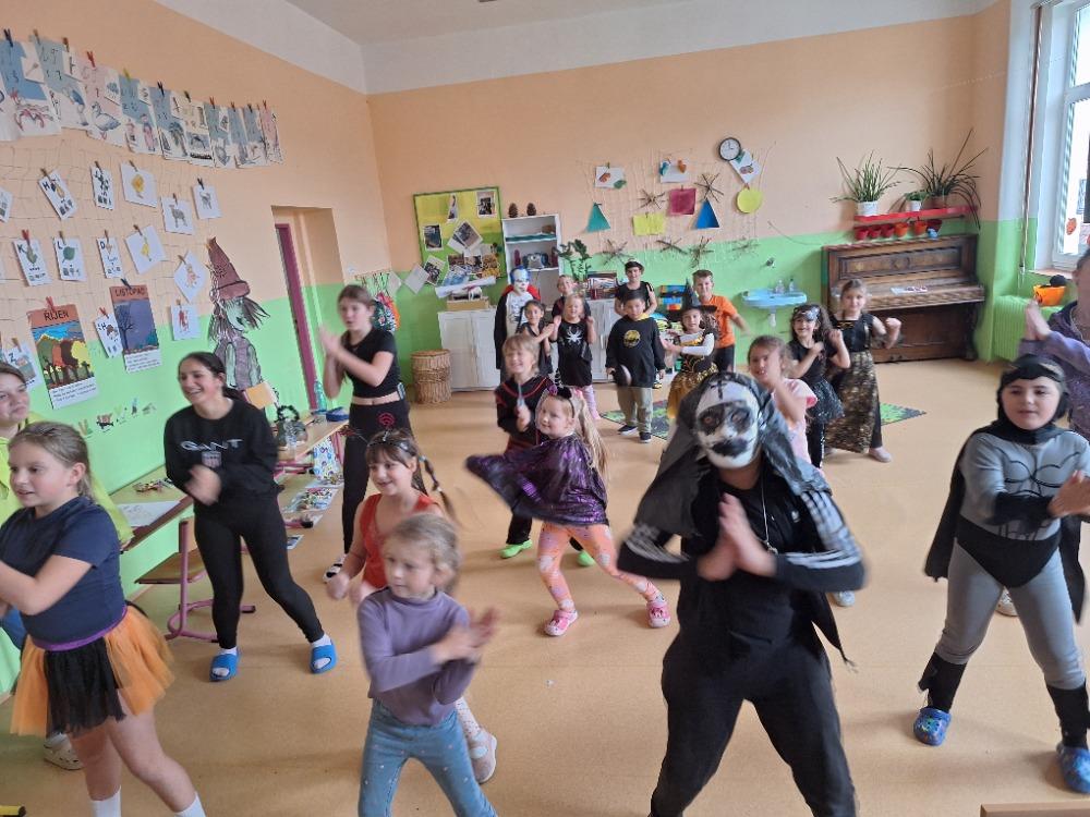 Děti si vyzkoušely svou šikovnost v halloweenských disciplínách, předvedly taneční kreace za doprovodu hudby a především si užily spoustu legrace.