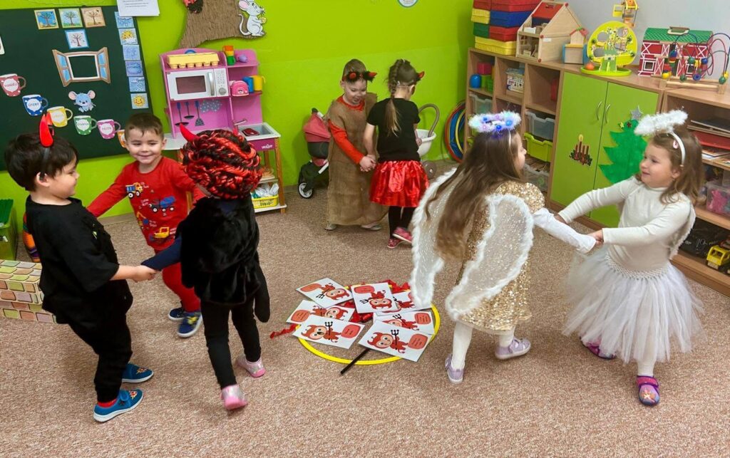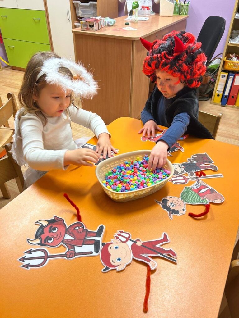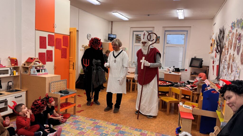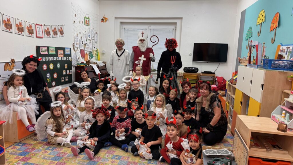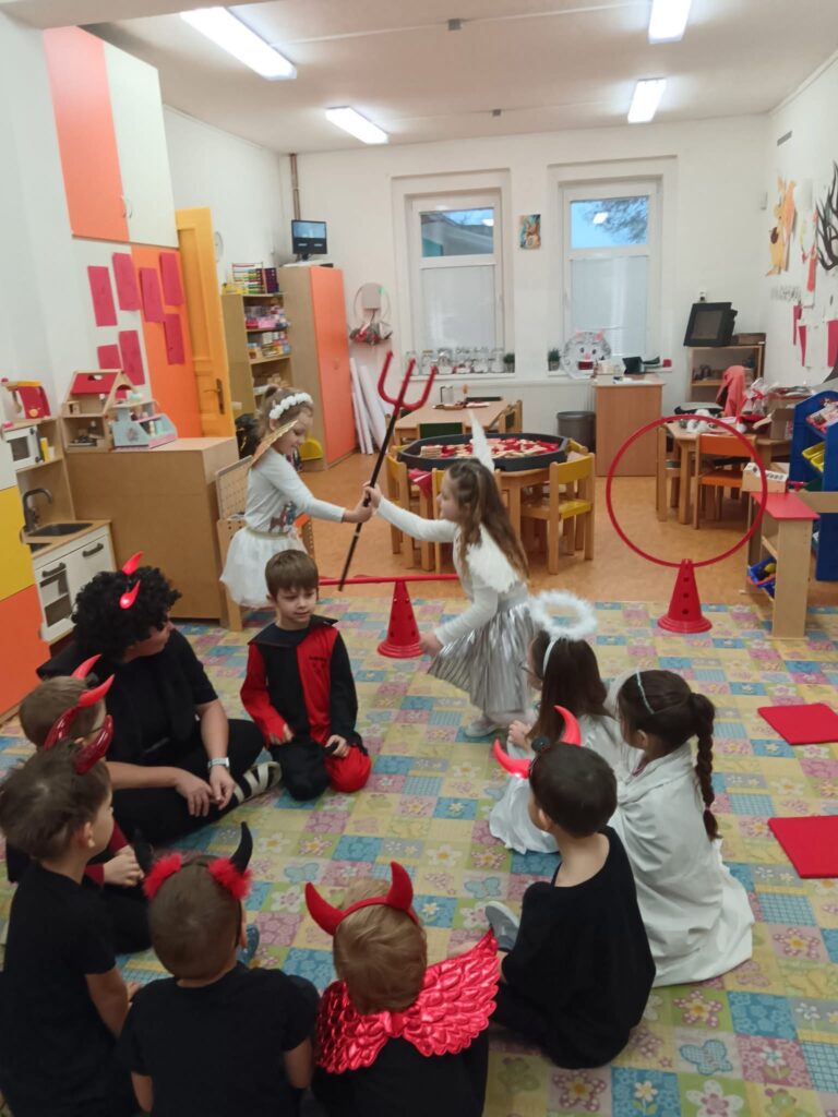 Dnes si děti užily zábavné dopoledne plné her a soutěží. Tvořily ve třídách pekelné úkoly i tančily. Největší zážitek však byla návštěva Mikuláše s čertem a andělem, kterým děti společně zazpívaly a za odměnu si domů odnesly sladkou nadílku.