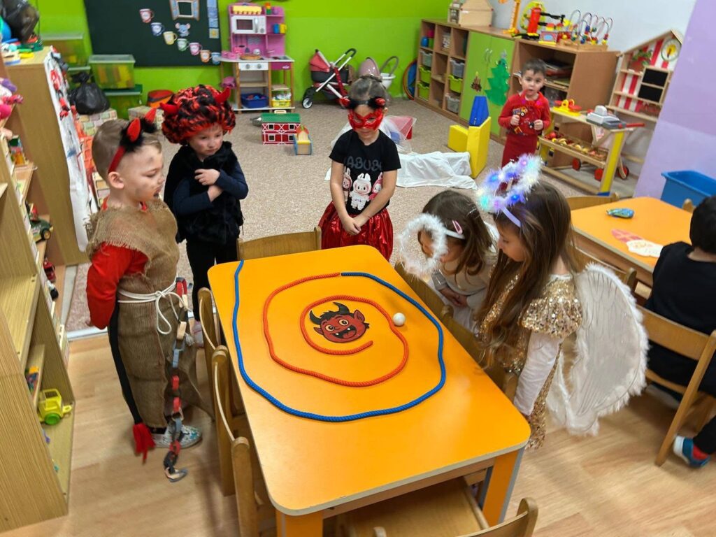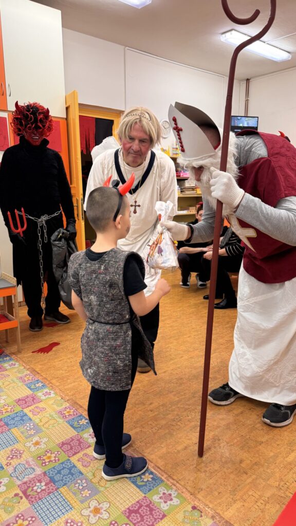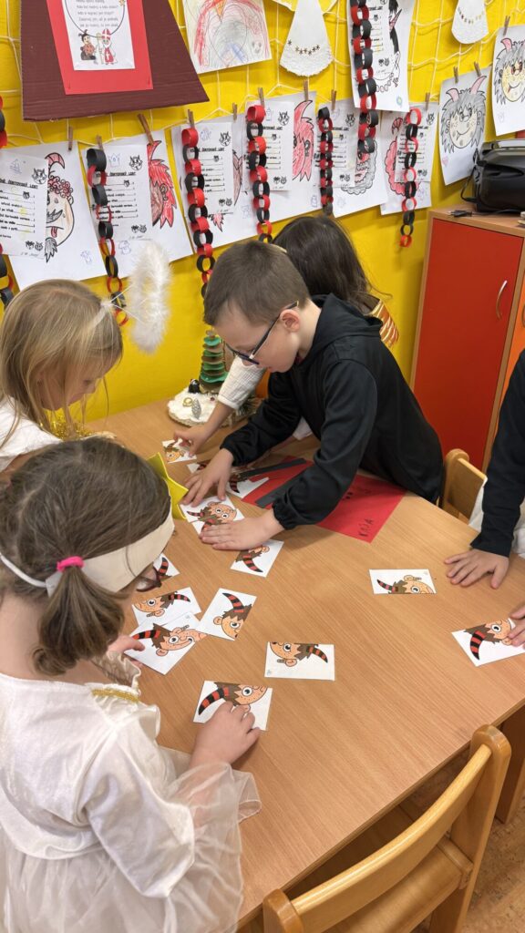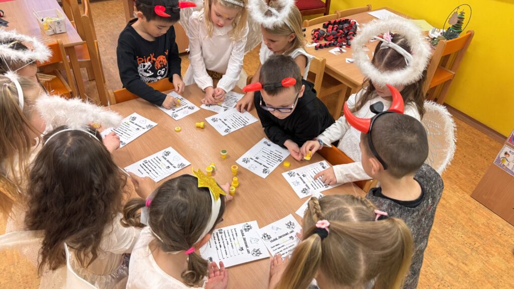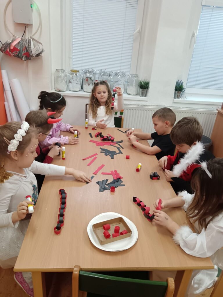 Dnes si děti užily zábavné dopoledne plné her a soutěží. Tvořily ve třídách pekelné úkoly i tančily. Největší zážitek však byla návštěva Mikuláše s čertem a andělem, kterým děti společně zazpívaly a za odměnu si domů odnesly sladkou nadílku.