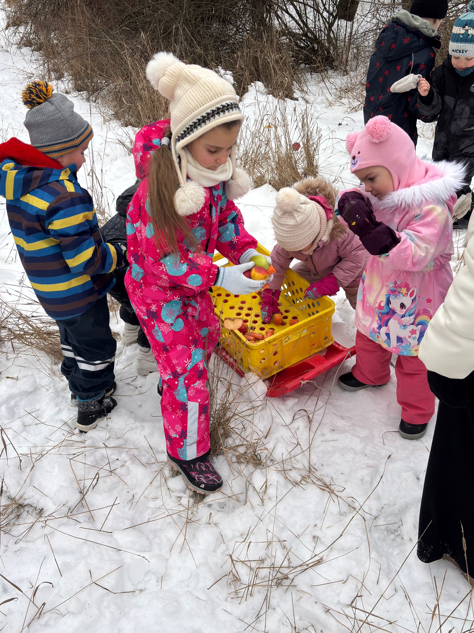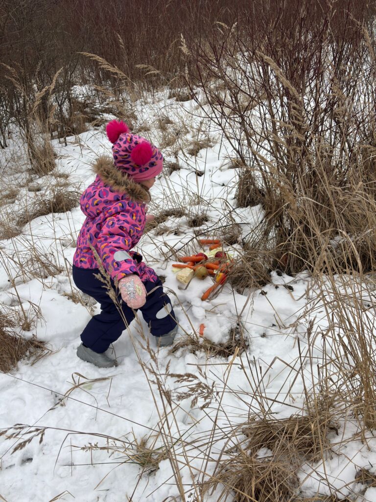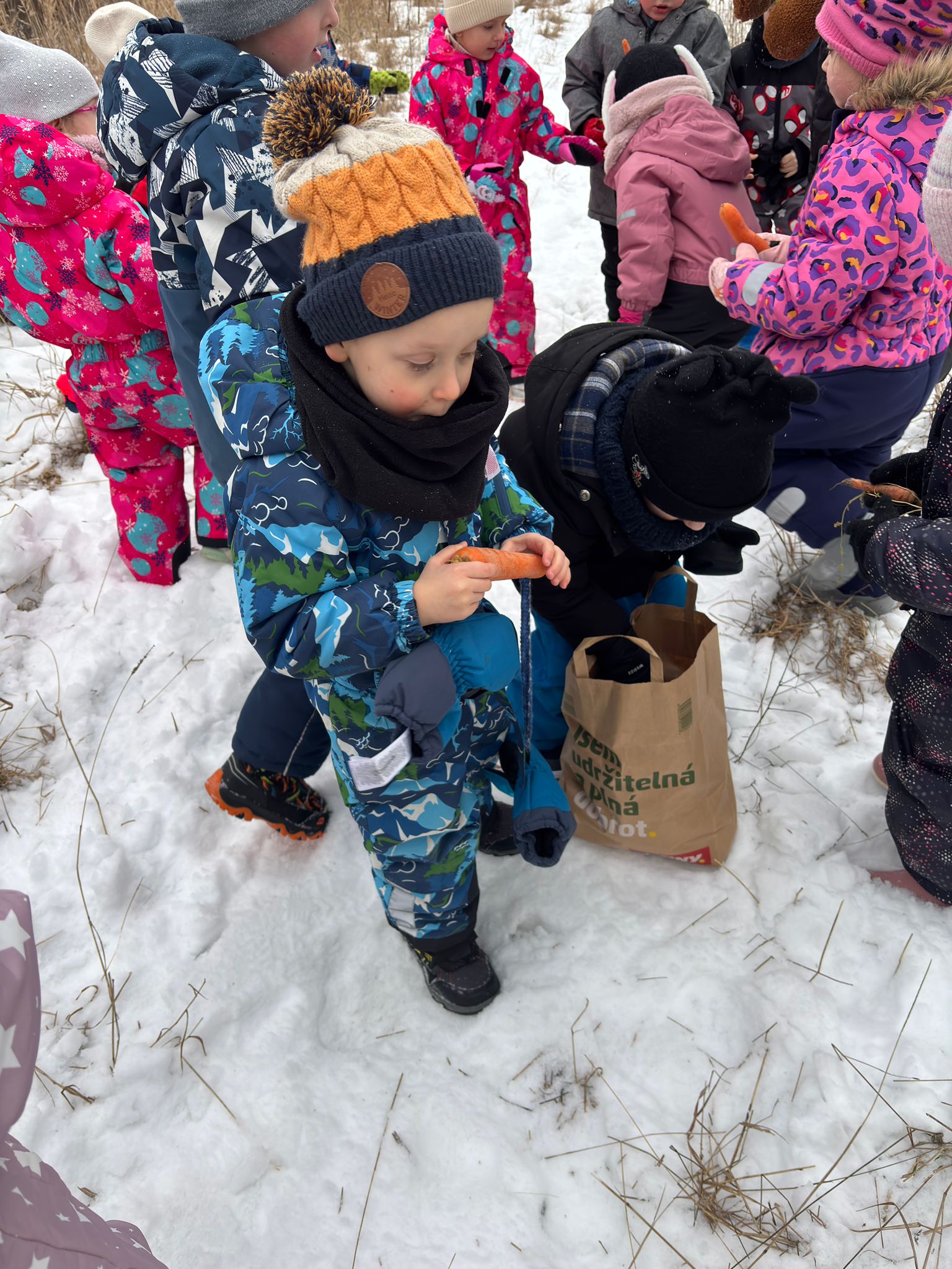 Dnes jsme s dětmi donesli potravu pro lesní zvířátka k blízkým polím a lesům. Všem rodičům děkujeme za donesení zeleniny a ovoce pro zvířátka.