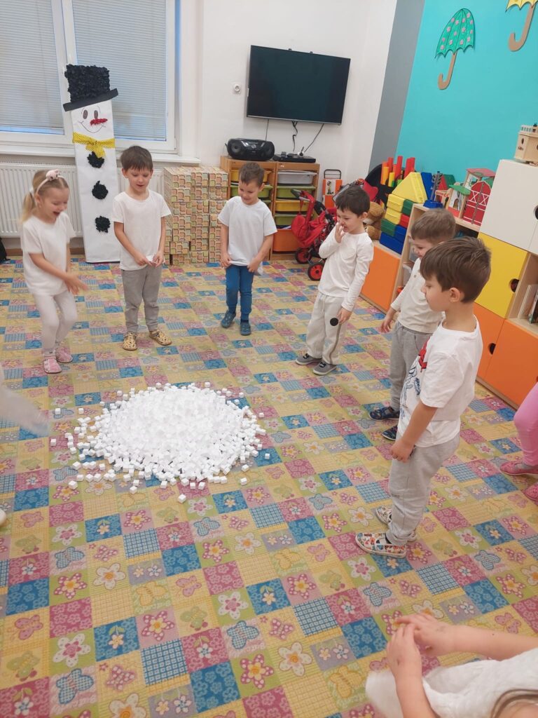 ❄️ Dne 27. 1. 2026 jsme si ve školce užili parádní Bílý den plný radosti, smíchu a zimní pohody. Čekala nás spousta zábavy, soutěží a kreativních činností. Děti si vyzkoušely házení „sněhových koulí“, lyžování, modelování sněhuláků a nechybělo ani tvoření – sněhuláci z vaty, fazolí, omalovánky a další zimní nápady ❄️⛄️