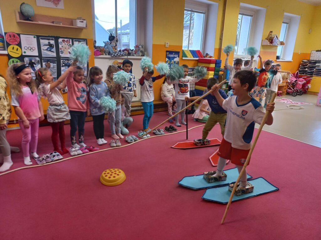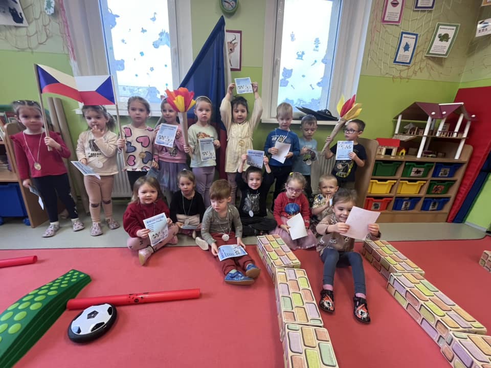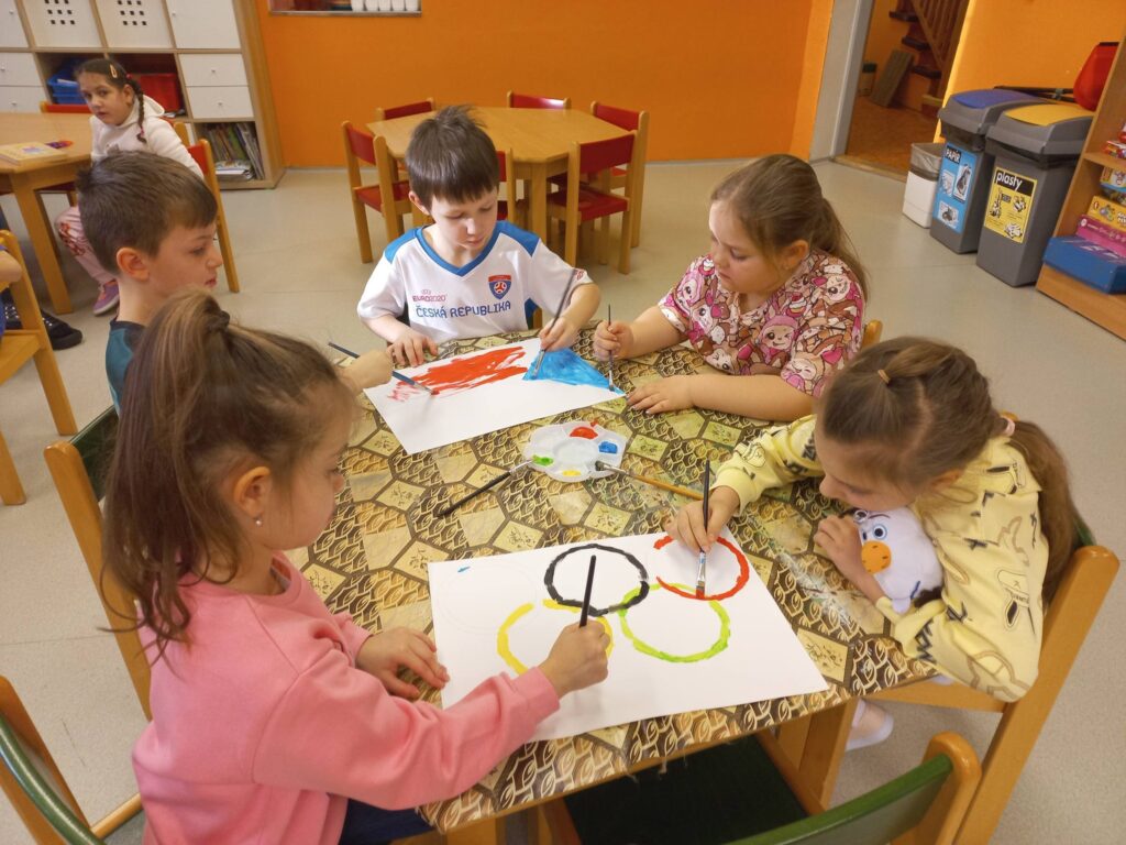 V týdnu byla naše školka plná sportovců, probíhala totiž zimní olympiáda! Hned ráno jsme si vytvořili olympijské kruhy, vlajkou a oheň. Po svačince jsme se vrhli do sportování. Vyzkoušeli jsme si lyžování, bobování, hokej, rychlobruslení i střelbu. Dnešní dopoledne jsme si užili naplno. Všem sportovcům byly slavnostně předány medaile, diplomy a sladká odměna.