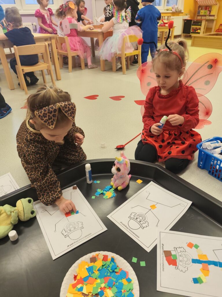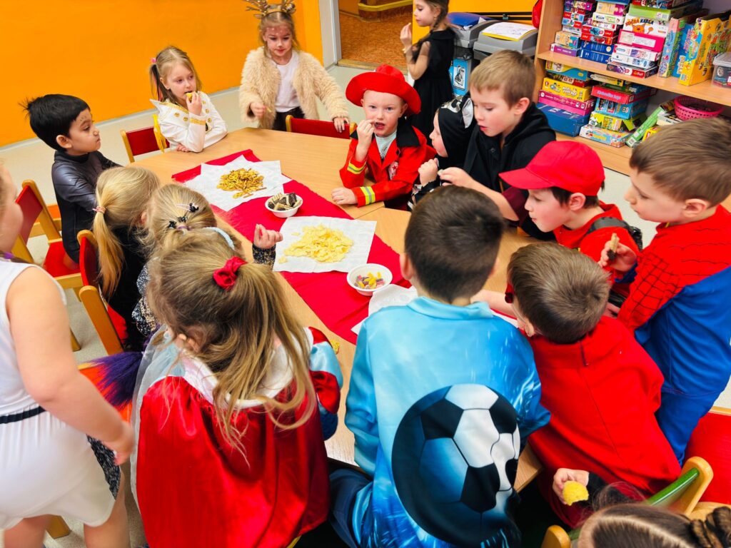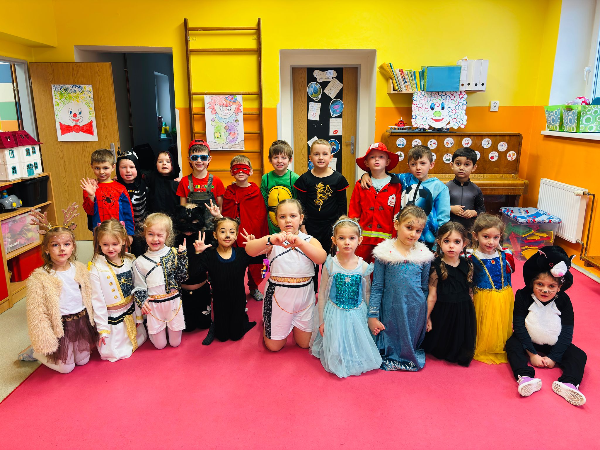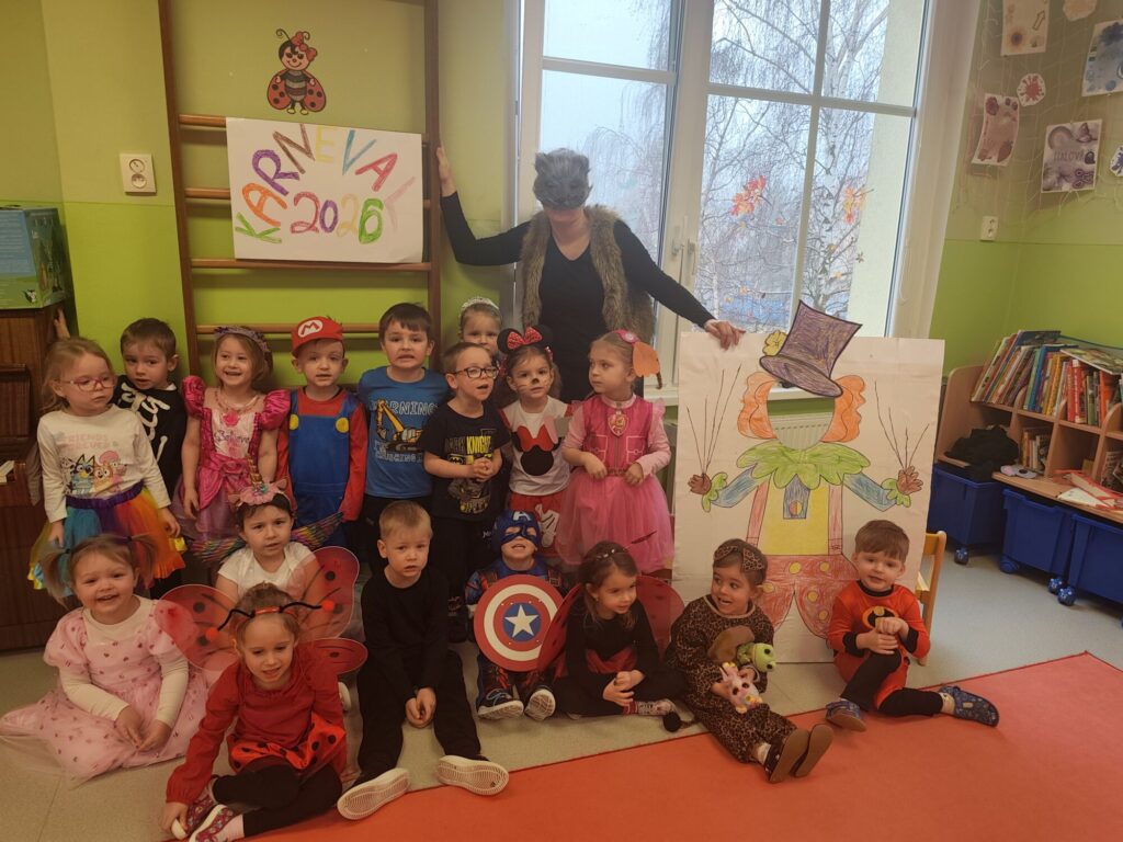 Dne 26.2. jsme si ve školce užili veselou masopustní oslavu.🤡 Děti přicházely do školky v nápaditých kostýmech a opravdu jim to slušelo. Každý si vybral masku podle svého přání a v ranním kruhu ji představil ostatním kamarádům. Děti tak měly možnost procvičit si vyjadřování i vystupování před kamarády. Ve třídách nechyběly tvořivé činnosti – děti vyráběly klauny a procvičovaly si prsty při manipulaci s modelinou. Nechyběly ani sportovní soutěže a karnevalové cvičení. Celý karneval jsme zakončily taneční diskotékou, kde si děti naplno užily radost z pohybu. Na závěr celého dopoledne čekalo na všechny děti také pohoštění-tímto děkujeme rodičům za donesené dobroty. Děti byly za své krásné masky odměněny diplomem a sladkostí🍬🍬🍭.