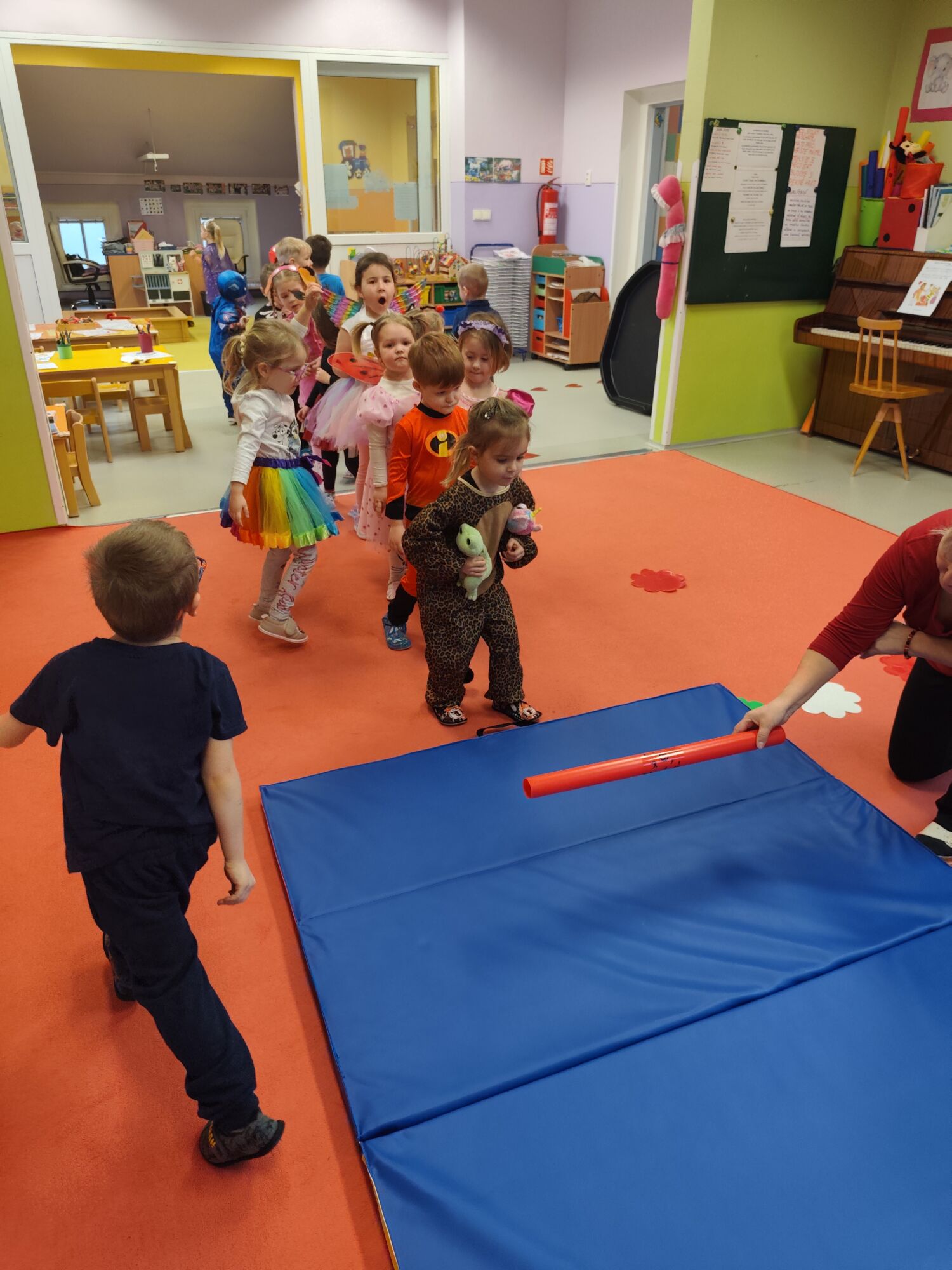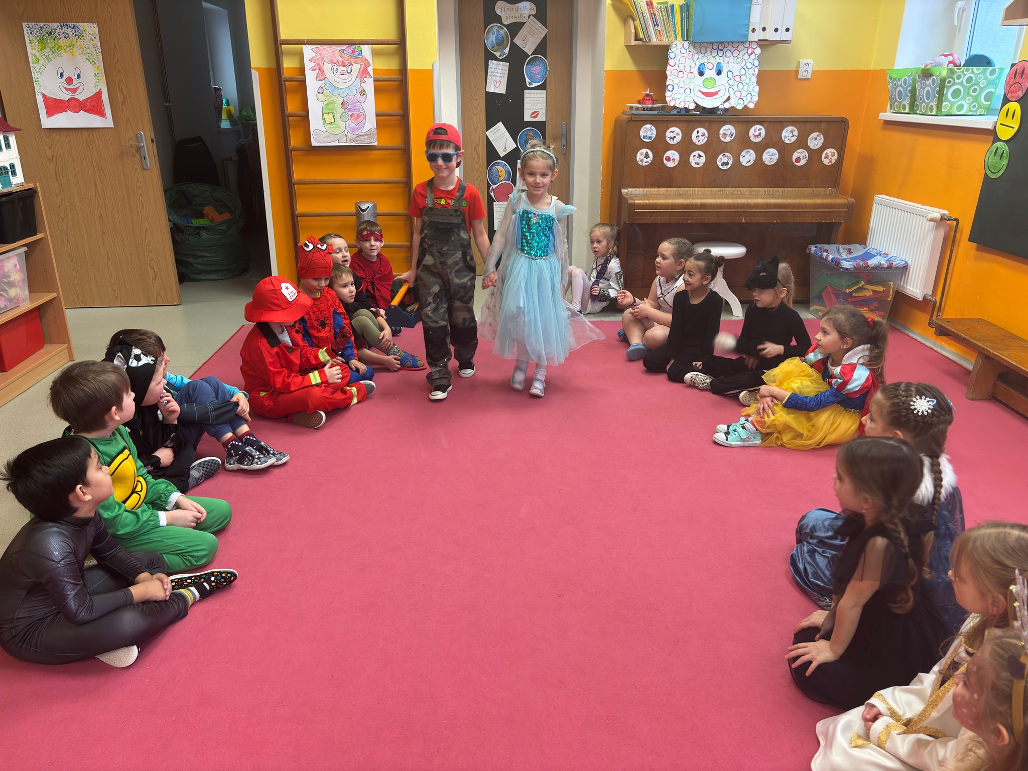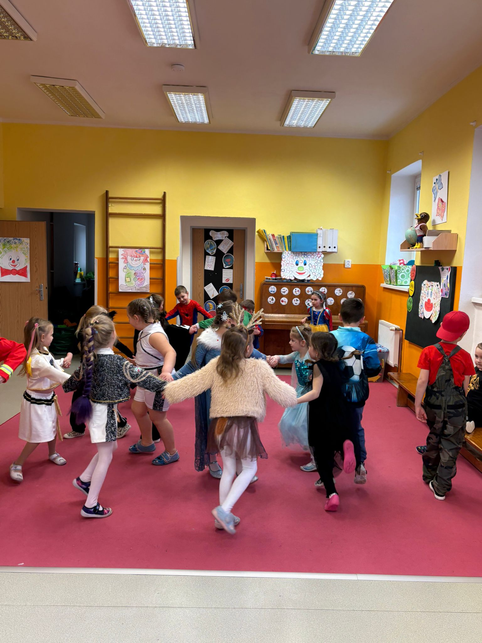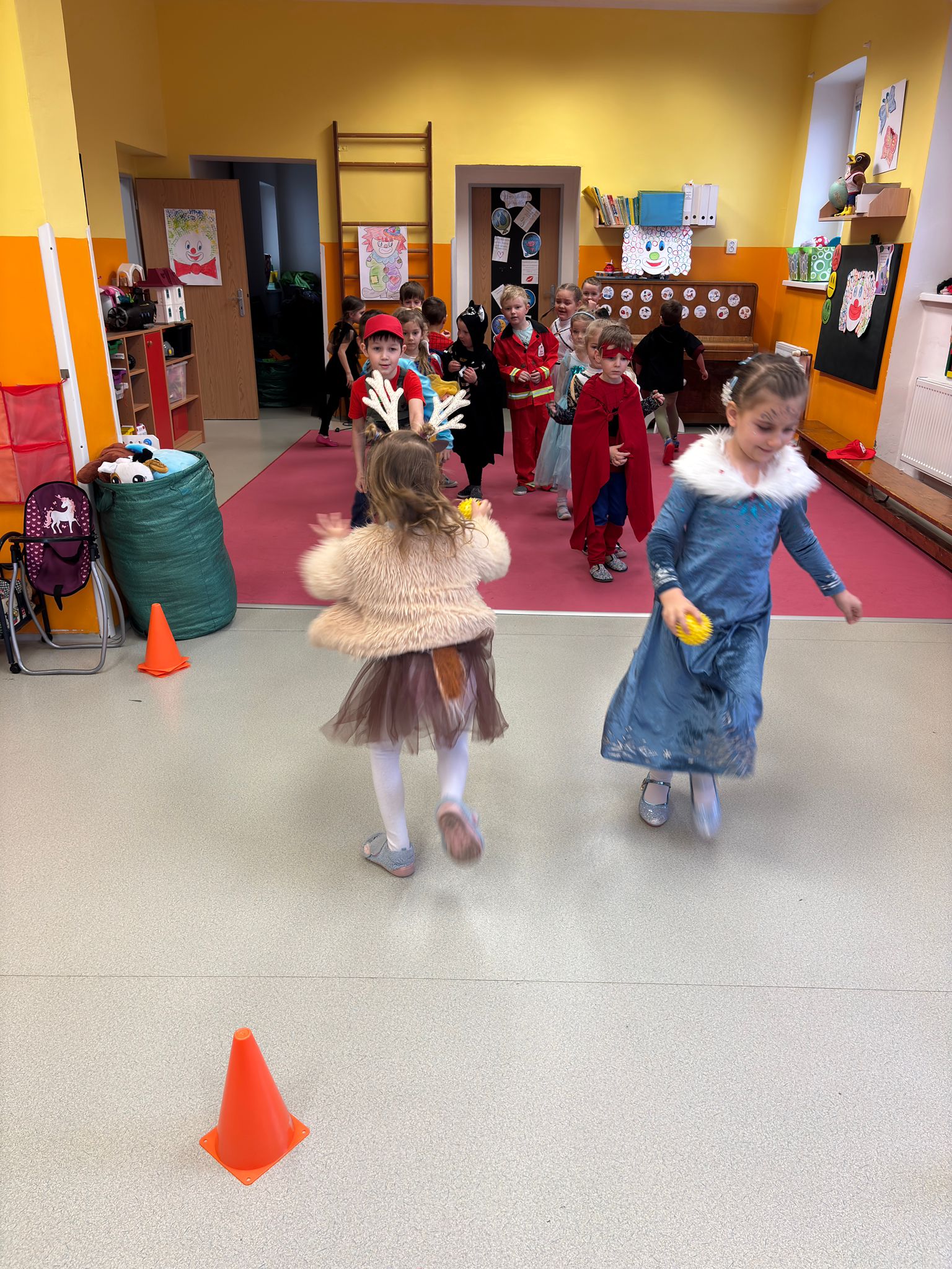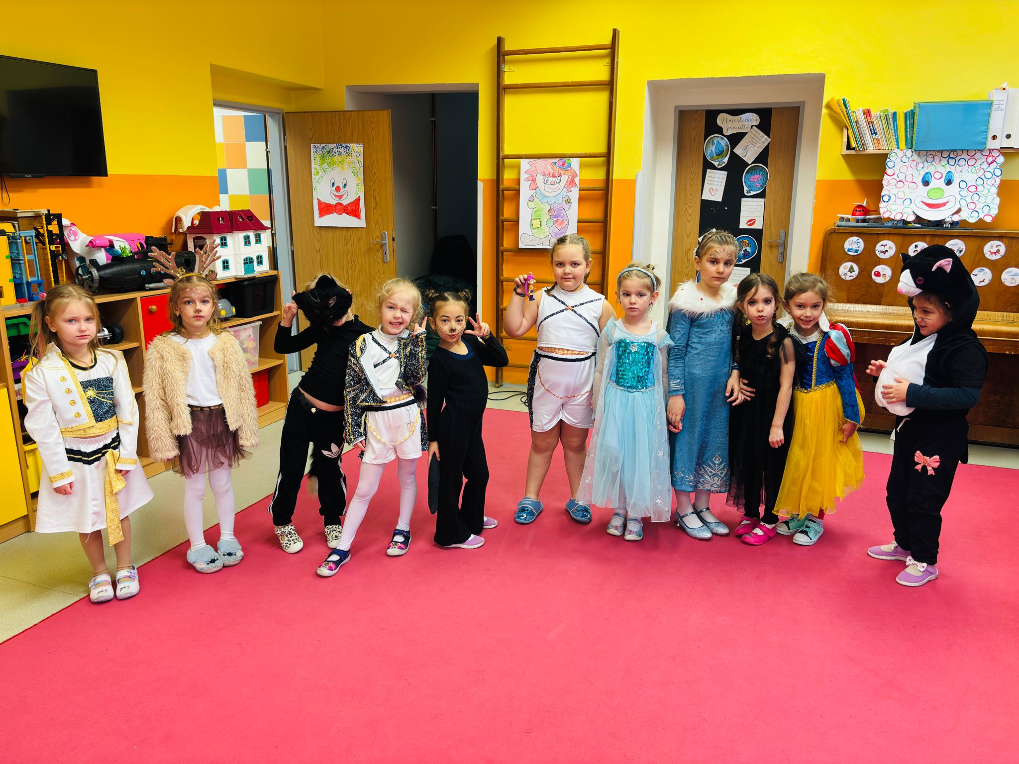 Dne 26.2. jsme si ve školce užili veselou masopustní oslavu.🤡 Děti přicházely do školky v nápaditých kostýmech a opravdu jim to slušelo. Každý si vybral masku podle svého přání a v ranním kruhu ji představil ostatním kamarádům. Děti tak měly možnost procvičit si vyjadřování i vystupování před kamarády. Ve třídách nechyběly tvořivé činnosti – děti vyráběly klauny a procvičovaly si prsty při manipulaci s modelinou. Nechyběly ani sportovní soutěže a karnevalové cvičení. Celý karneval jsme zakončily taneční diskotékou, kde si děti naplno užily radost z pohybu. Na závěr celého dopoledne čekalo na všechny děti také pohoštění-tímto děkujeme rodičům za donesené dobroty. Děti byly za své krásné masky odměněny diplomem a sladkostí🍬🍬🍭.