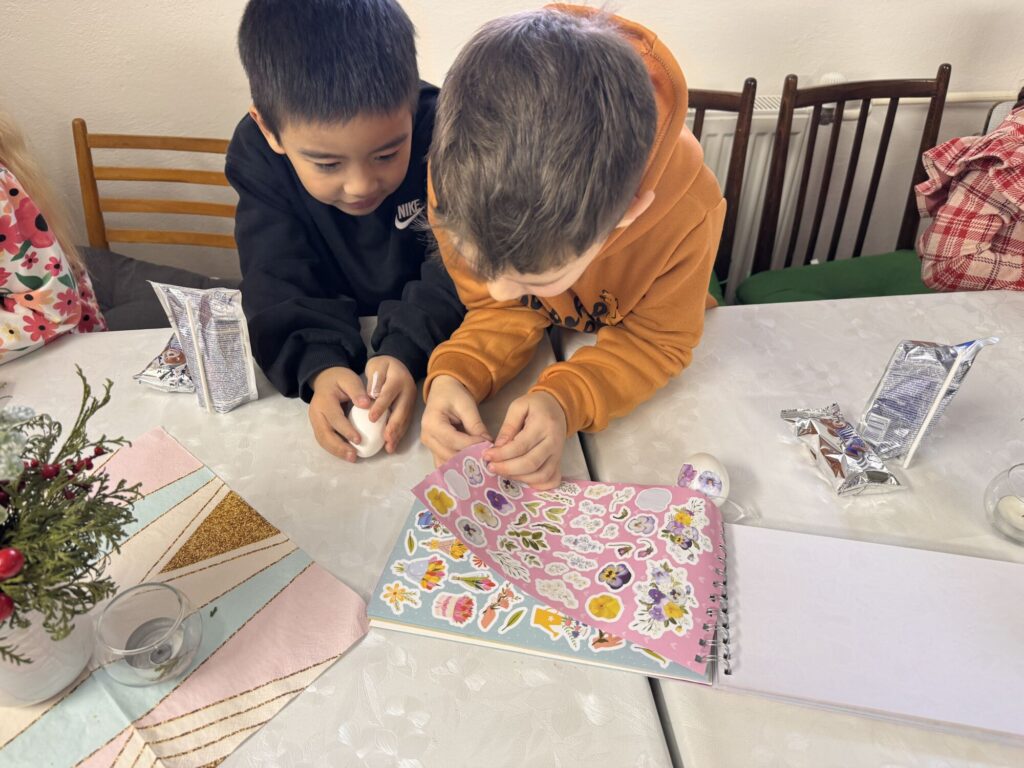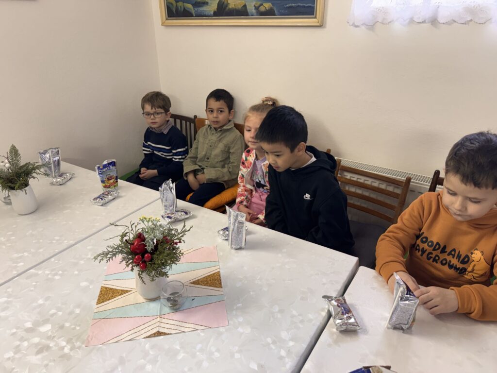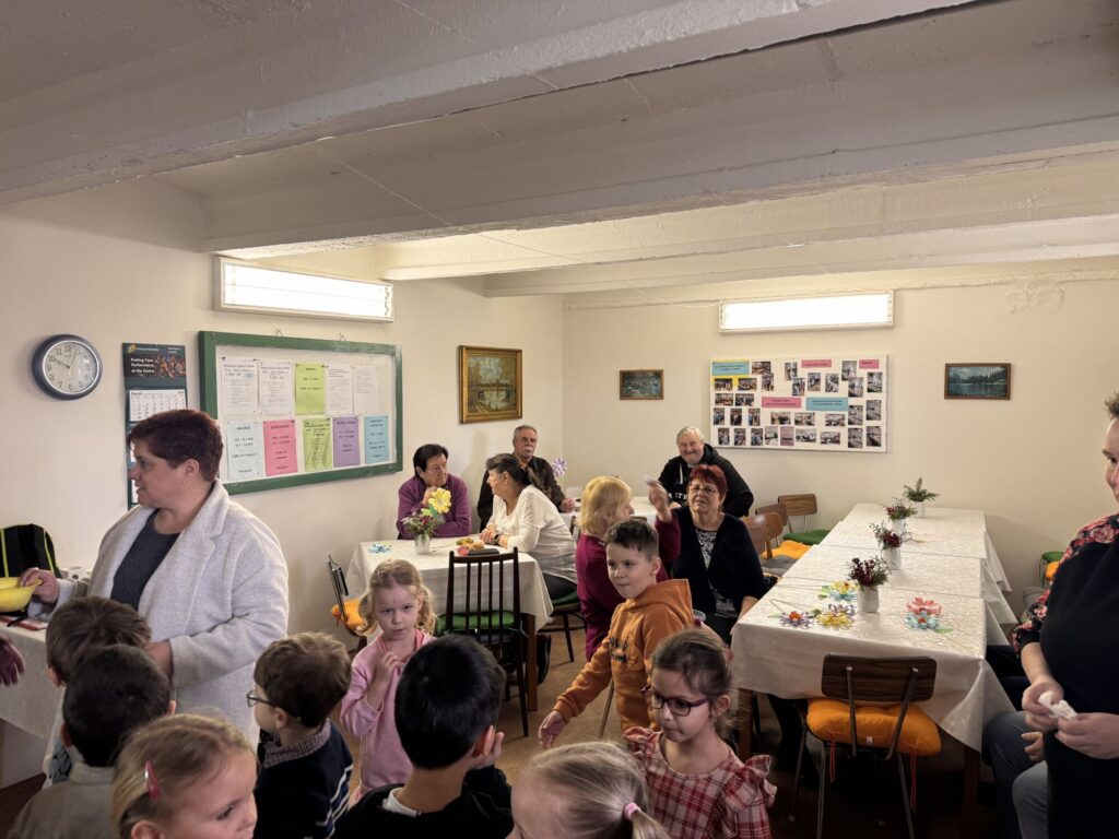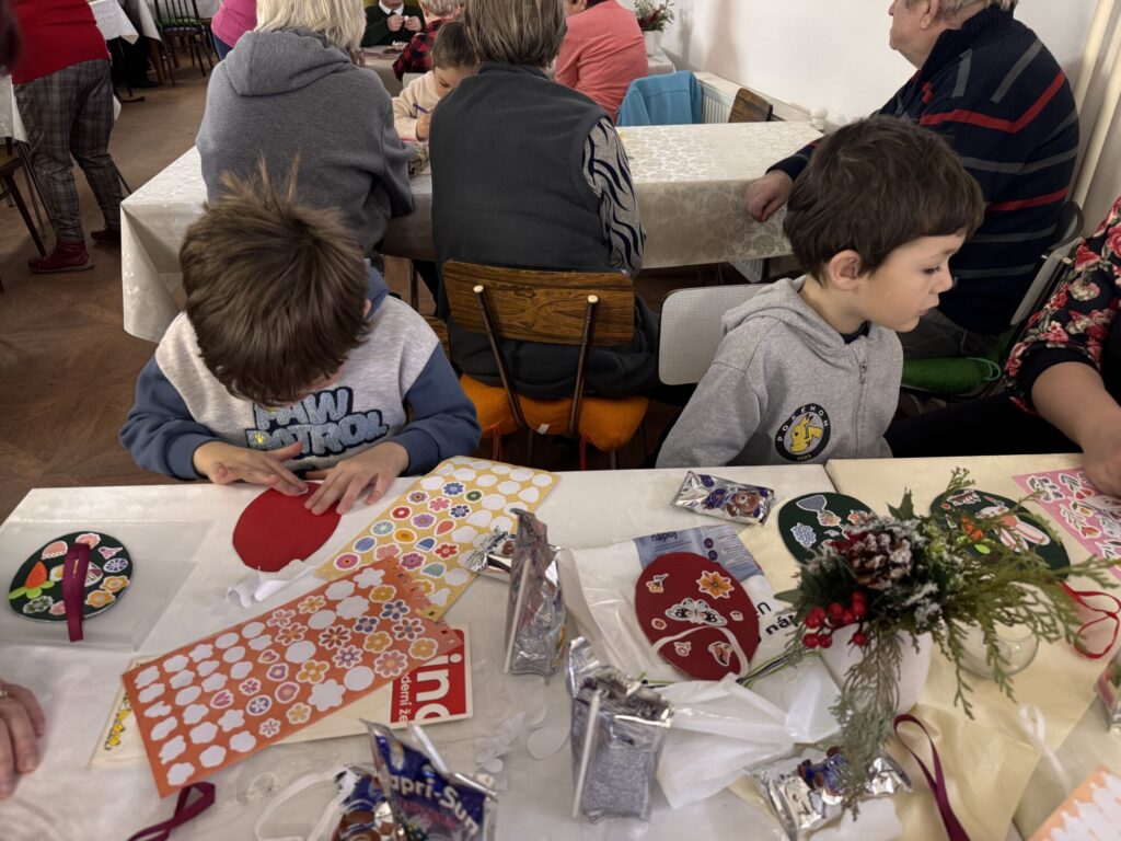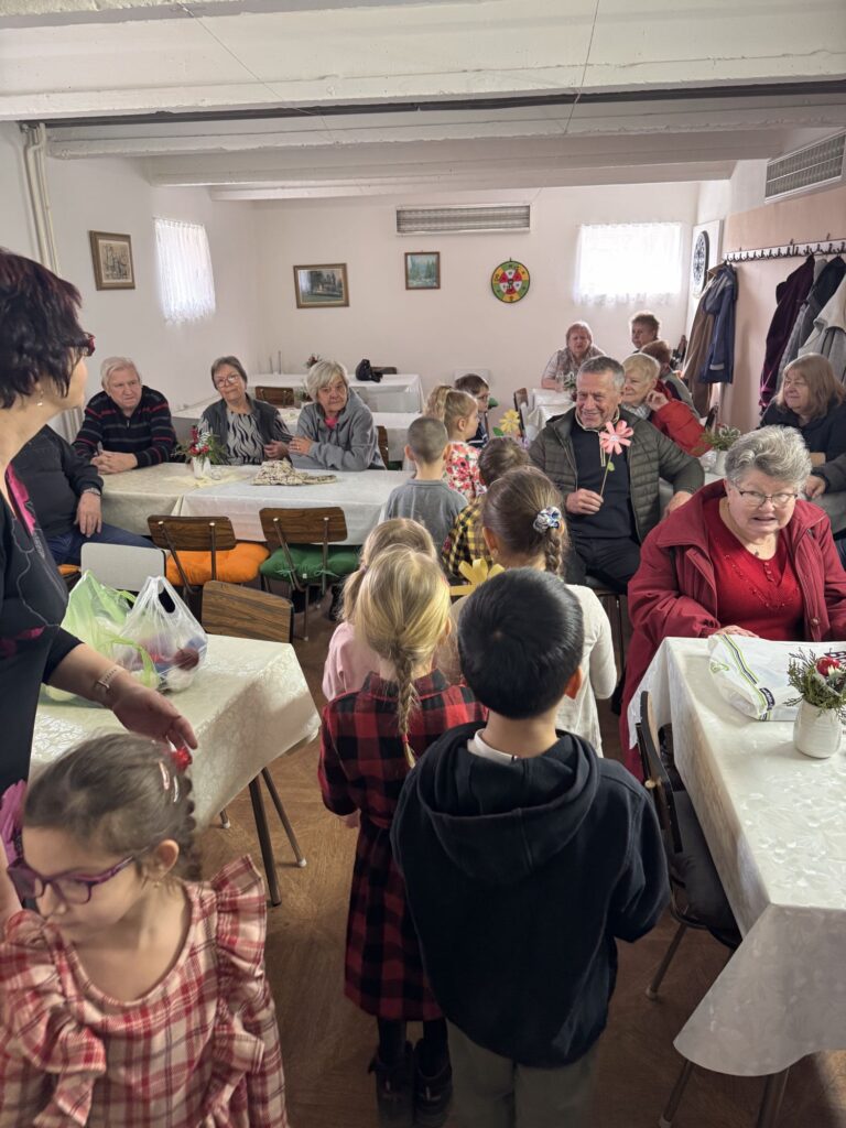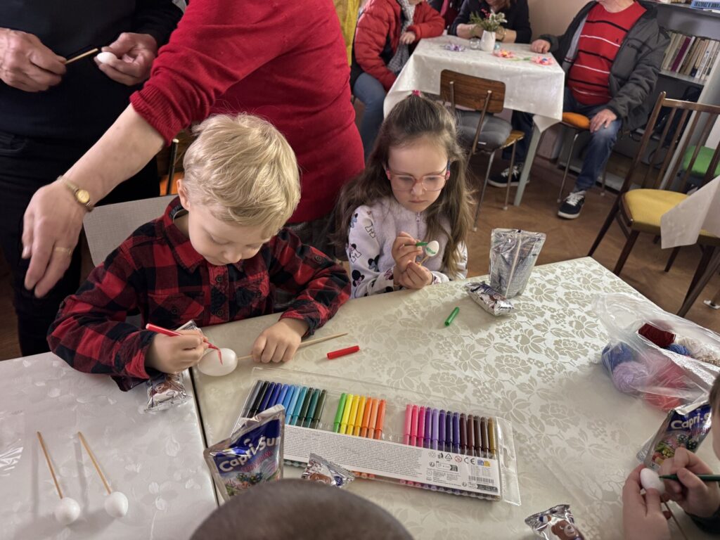Děti zazpívaly písničky o kytičkách a jaru, rozdaly vyrobené kytičky z barevného papíru a tím tak všechny potěšily. Společně si se seniory zahráli různé hry, ozdobili velikonoční vajíčka a obdrželi malé pohoštění. Děkujeme moc za pozvání a budeme se těšit na další společné chvíle.