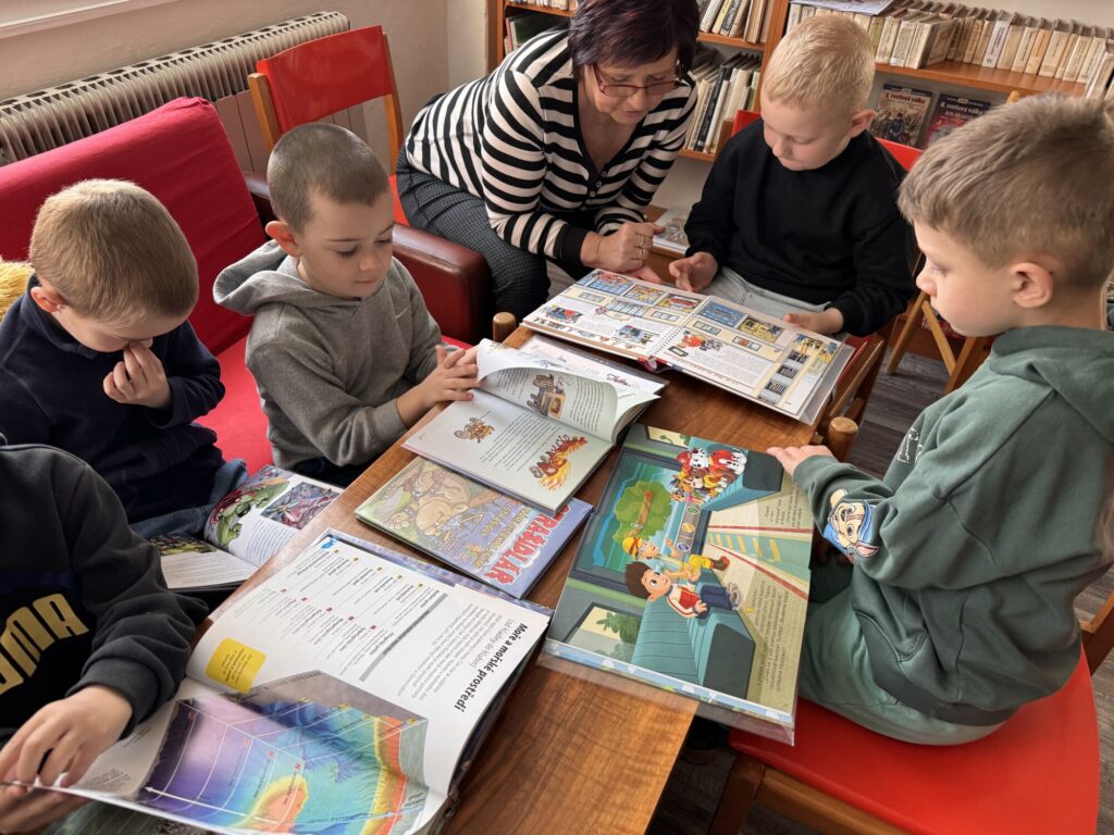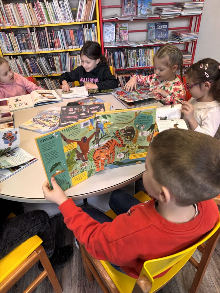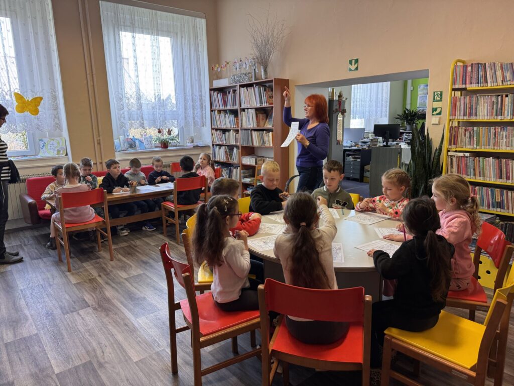 Na děti zde čekala paní knihovnice Jitka Riegrová, která si pro ně připravila velmi poutavý a pečlivě promyšlený program. Děti se zábavnou formou seznámily s prostředím knihovny, dozvěděly se, jak to v knihovně funguje, kdo si může knihy půjčovat a jak se ke knihám správně chovat.